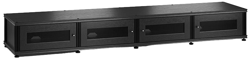 This is a low and wide cabinet with four doors, so it will hold plenty of gear and will accommodate the largests of TVs. This cabinet may mounted to the wall by simply removing the feet and attaching the wall mounting accessory.Read More